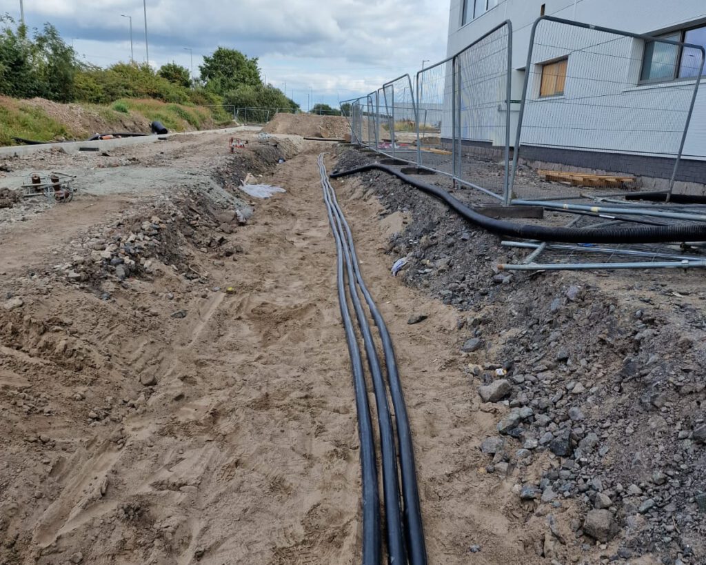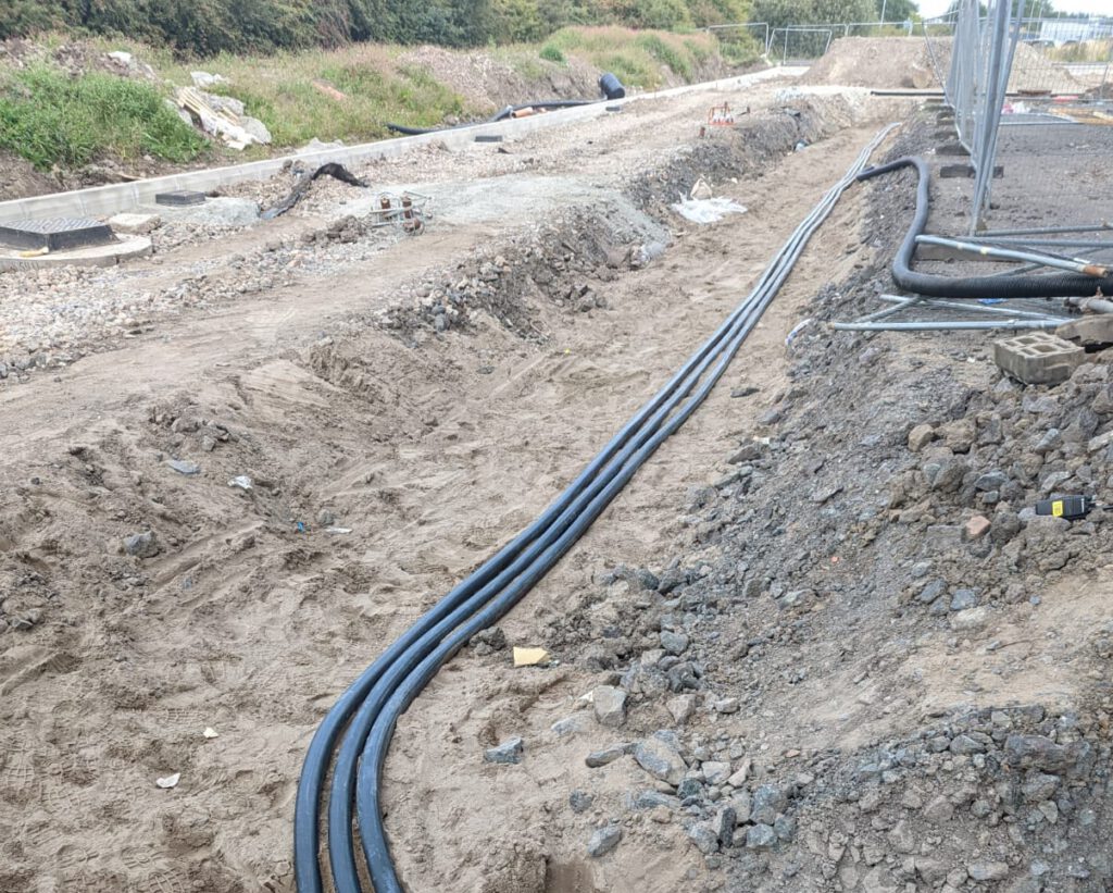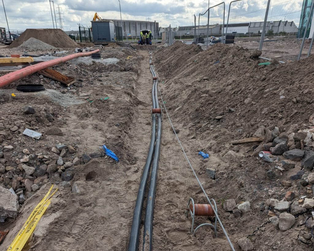 Every cable was clearly identified within surface containment and external chambers, ensuring traceability and long-term maintainability. All installations were fully tested and certified upon completion, with detailed test results and marked-up as-installed drawings provided to the client.