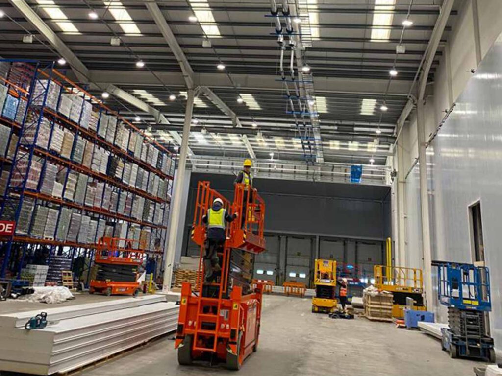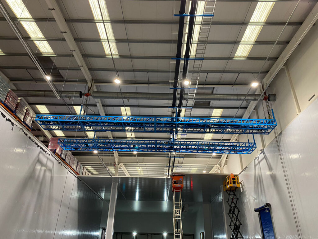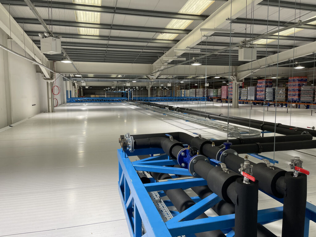 Advanced Engineering Group delivered mechanical services works for a chilled storage unit in Dublin on behalf of Powertech for the client Musgrave. The project involved the installation of stainless steel glycol and chilled water systems, structural gantries, and associated mechanical infrastructure to support a large-scale temperature-controlled warehouse environment.